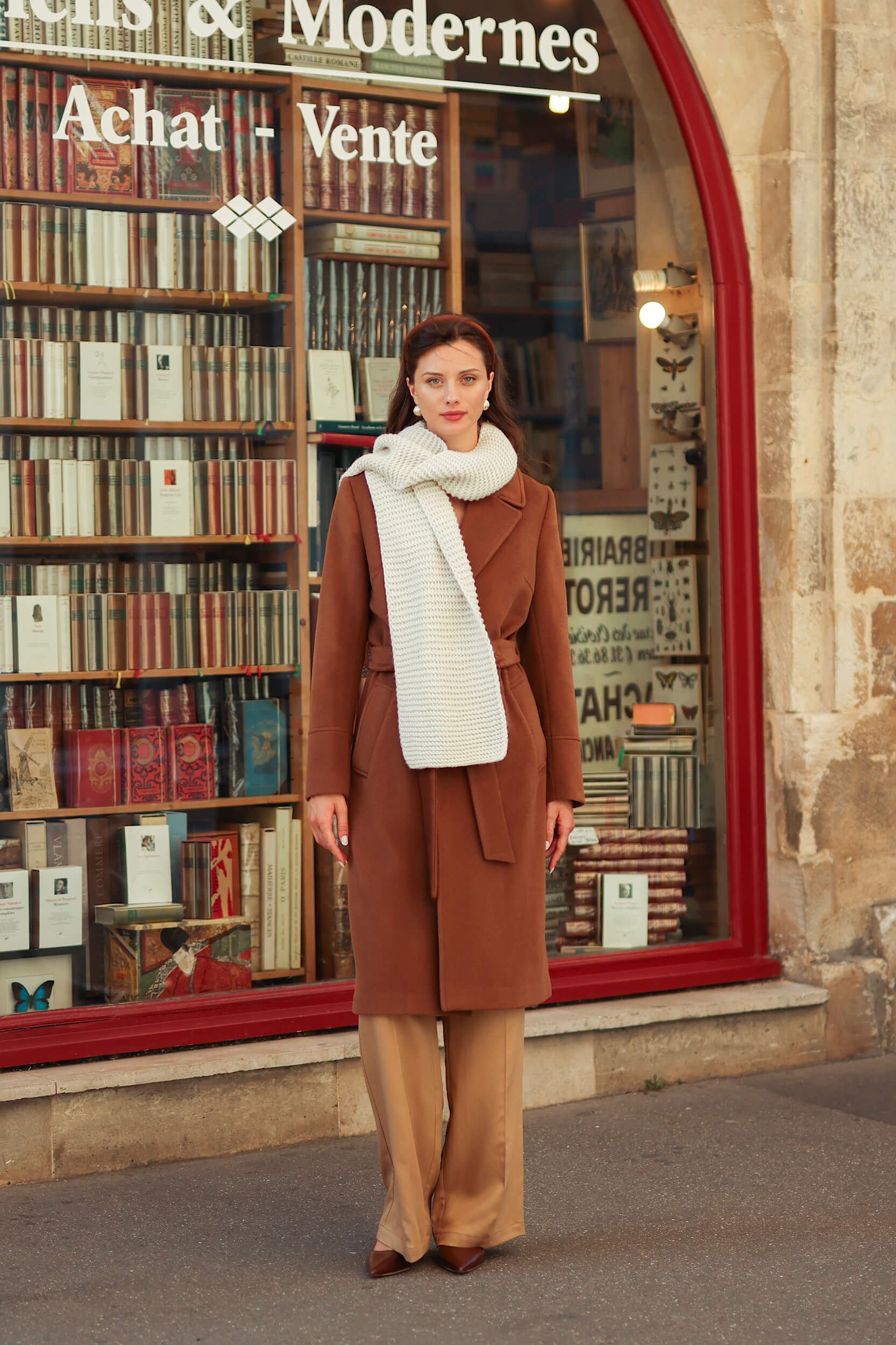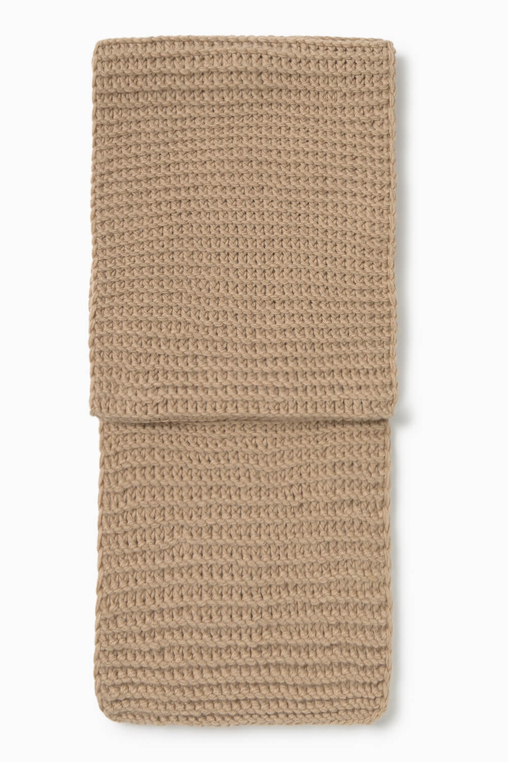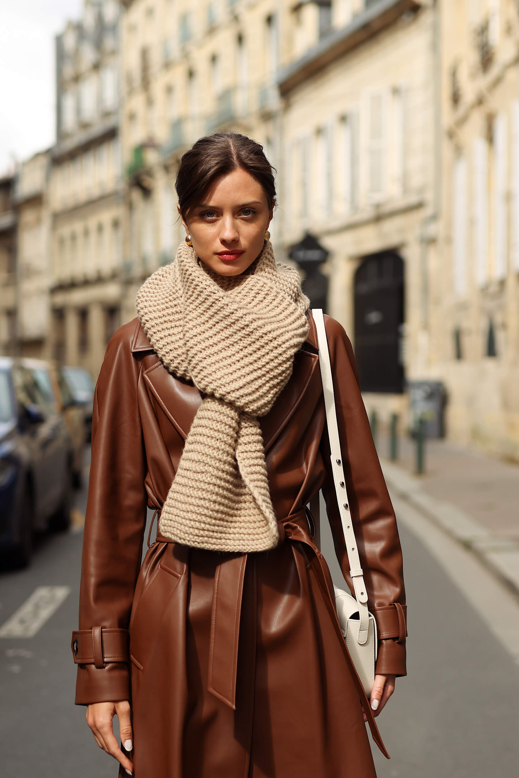Handknit by European artisans from a blend of baby alpaca and superwash merino fine, this scarf features a lightweight yet warm feel. Measuring 24 cm x 2.20 m, it is crafted in a garter stitch with a raised, textured weave. All proceeds from the sale of this scarf go entirely to the artisans, Gaâla does not make a profit.