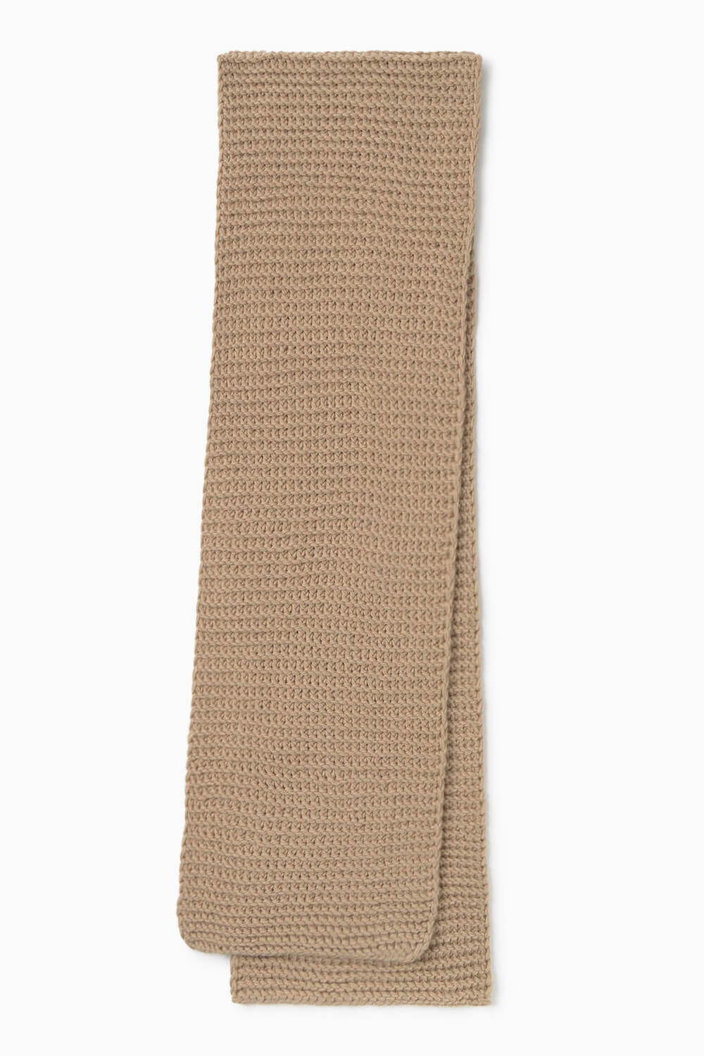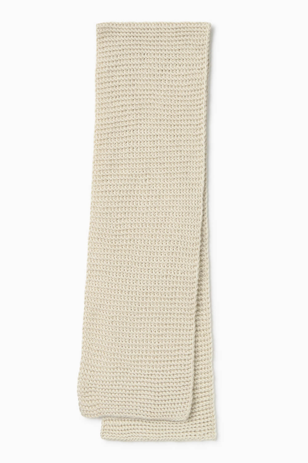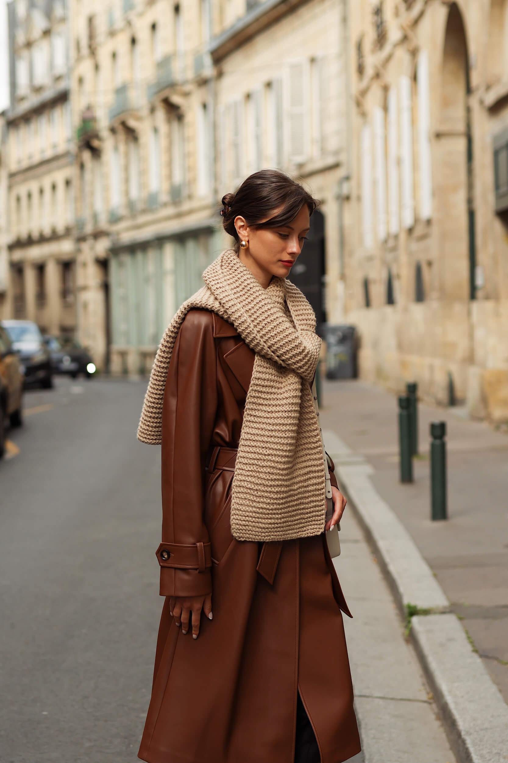 Handknit by European artisans from a blend of baby alpaca and superwash merino fine, this scarf features a lightweight yet warm feel. Measuring 24 cm x 2.20 m, it is crafted in a garter stitch with a raised, textured weave. All proceeds from the sale of this scarf go entirely to the artisans, Gaâla does not make a profit.