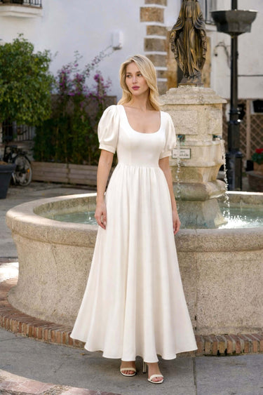 Our made-to-order pieces take 4-5 weeks to create and ship. We recommend ordering your wedding dress as early as 6 months in advance, which is ideal to allow for any possible exchanges or adjustments. However, 9-12 weeks is the minimum time required to ensure your gown is ready for the big day.