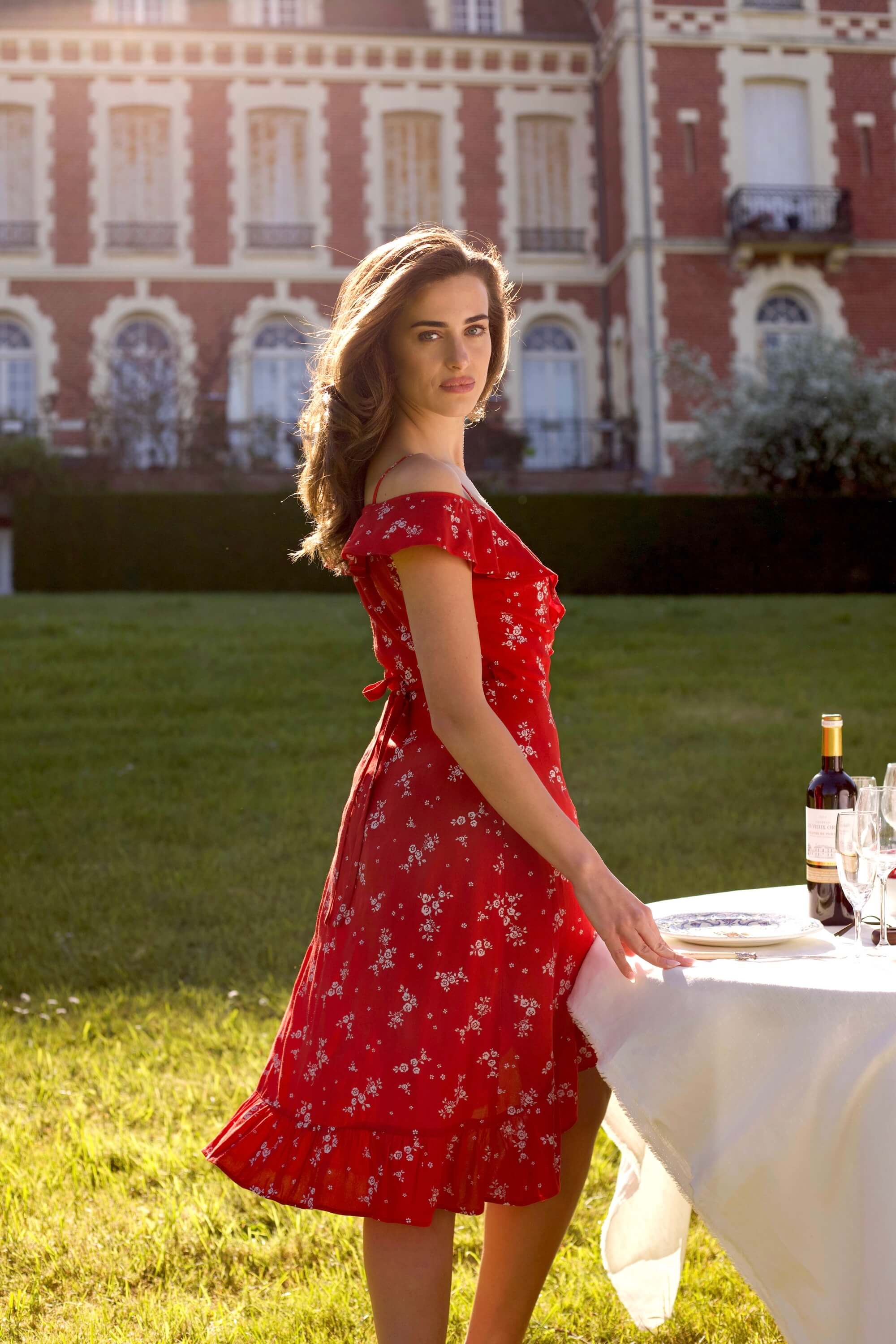 The dress is offered in multiple sizes; the model is 175 cm tall and wears a size XS. Please check the size guide for the best fit.