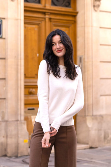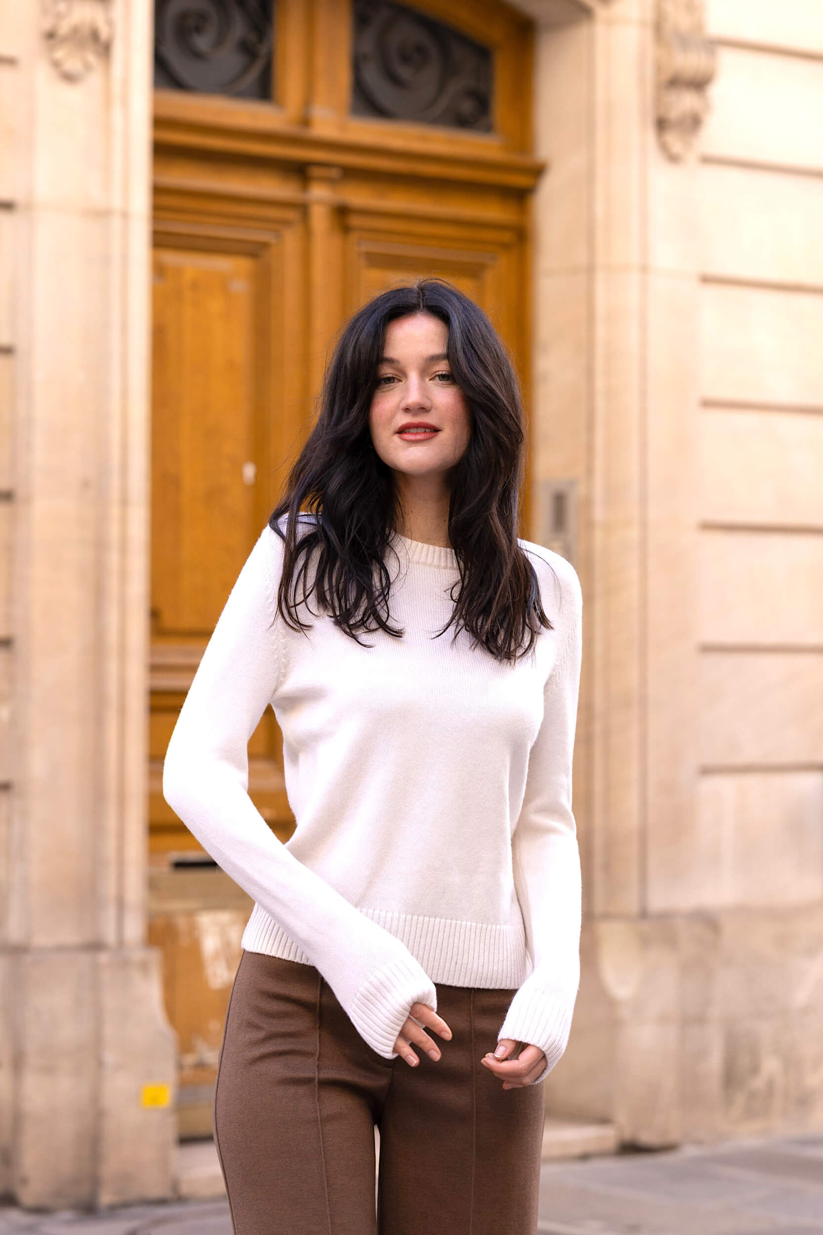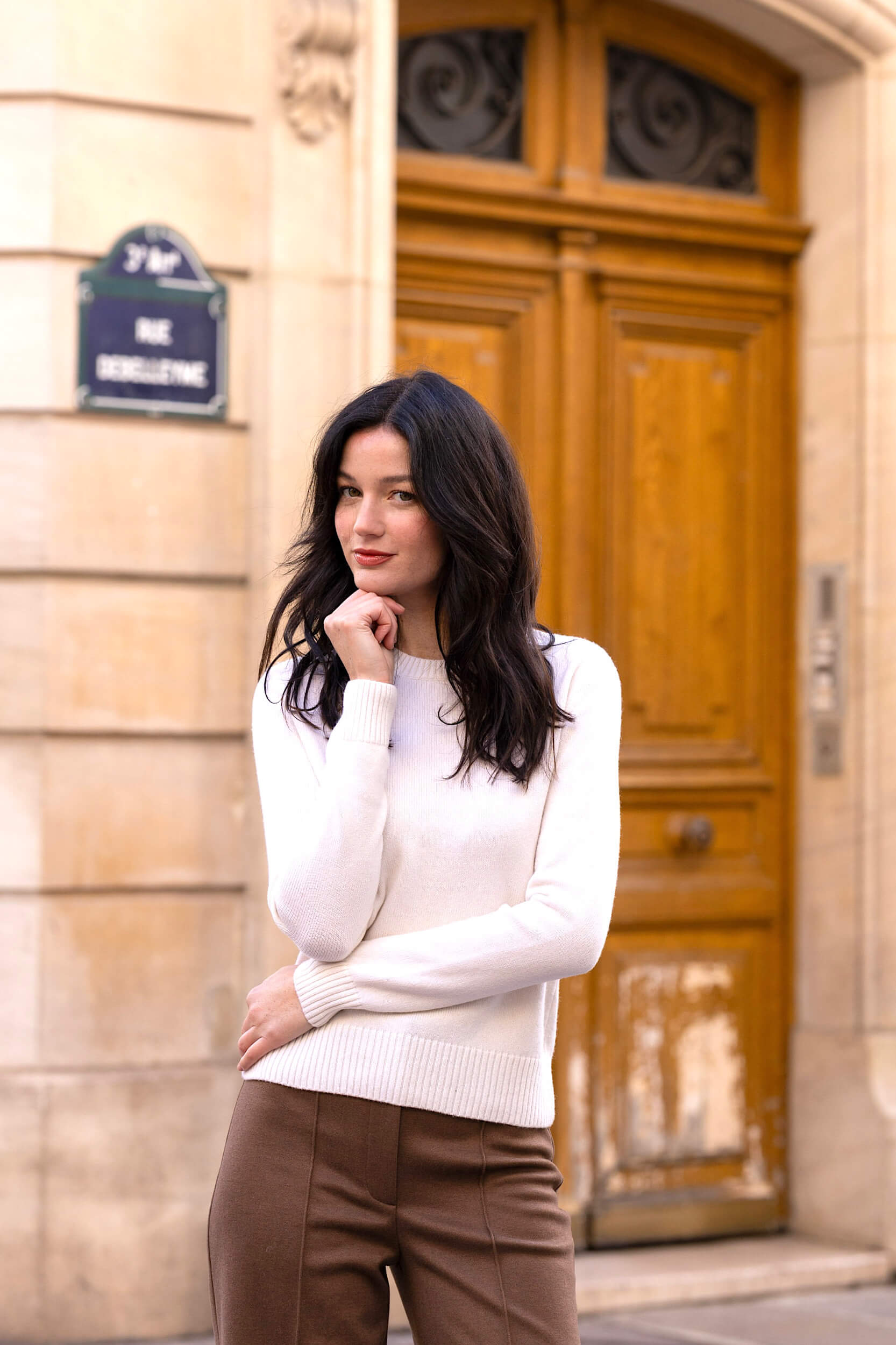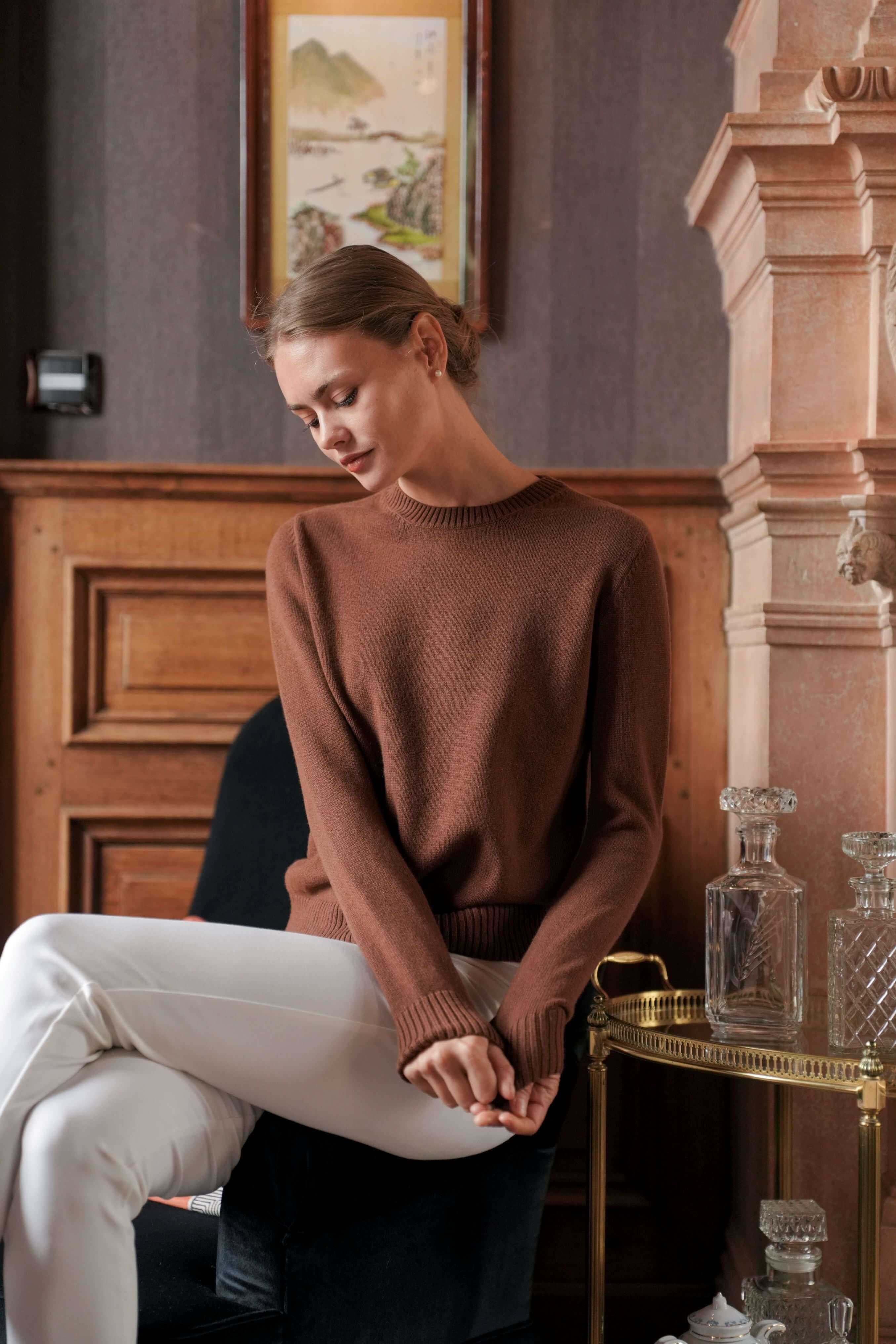 This classic crew neck sweater is machine-knit from a blend of superfine wool and cashmere. Designed with a straight silhouette and classic crew neckline, the length is balanced to wear neatly tucked in or left out.
