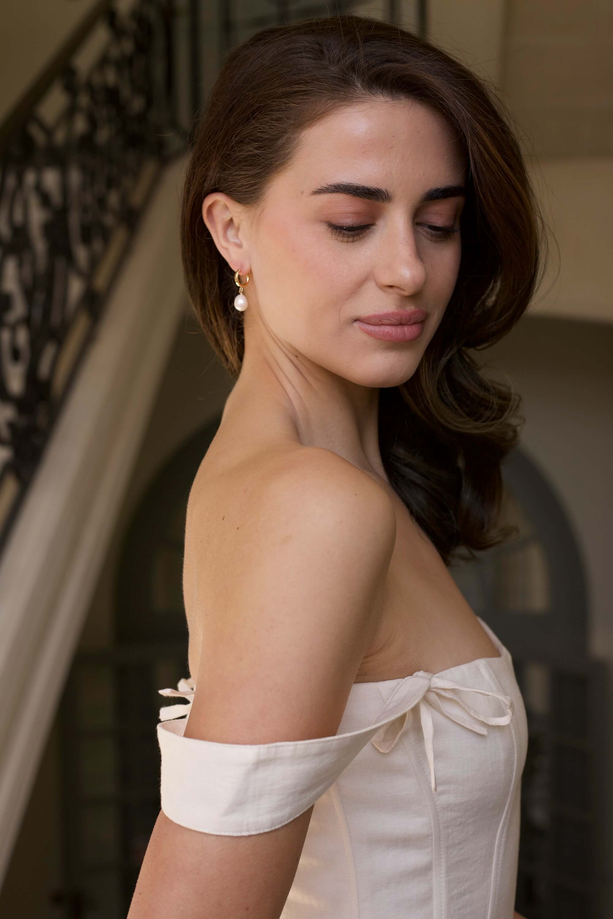 Inspired by a life lived with grace, our Florence Nightingale earrings are crafted with suspended from 14k huggie hoops. For an elegant pairing, wear with the Jupiter necklace.