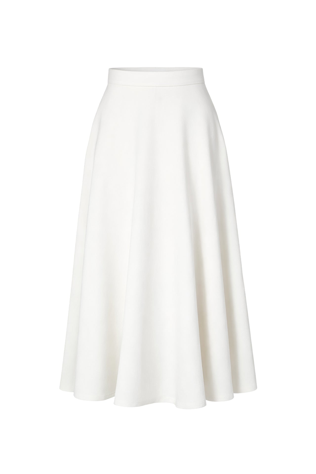 Created from the finest upcycled wool, this half-circle skirt is a midi-length silhouette featuring a full viscose lining, integrated pockets, a back zipper closure, and a dedicated waist panel for fit and structure.