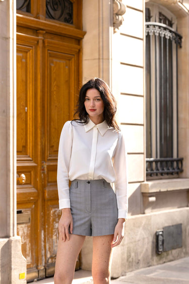High-waisted cotton tailored shorts