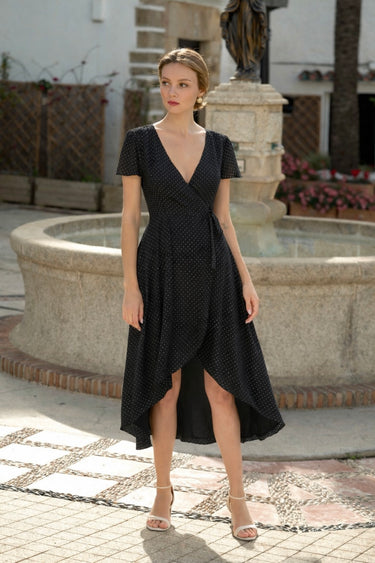 Wrap dress with asymmetrical hem