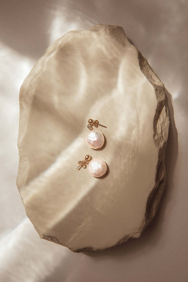 These handcrafted earrings suspend 13mm freshwater coin pearls and feature 4mm, 14k gold-filled studs with secure butterfly backings for comfortable and easy wear.