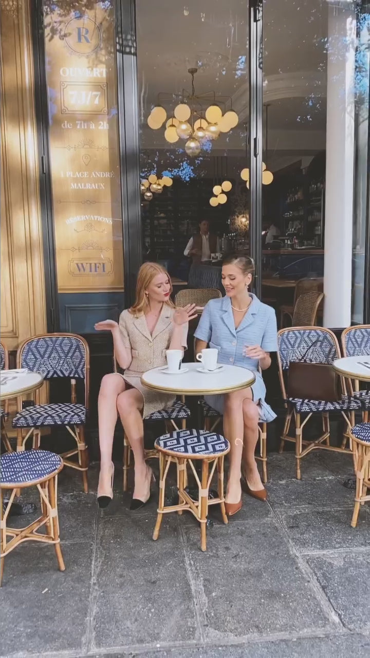 This ensemble is crafted in durable up-cycled cotton. Style with pumps and a clutch.