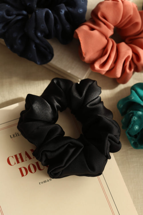 This scrunchie is handcrafted from luxurious silk surplus. It is gentle on your hair and perfect for everyday wear.
