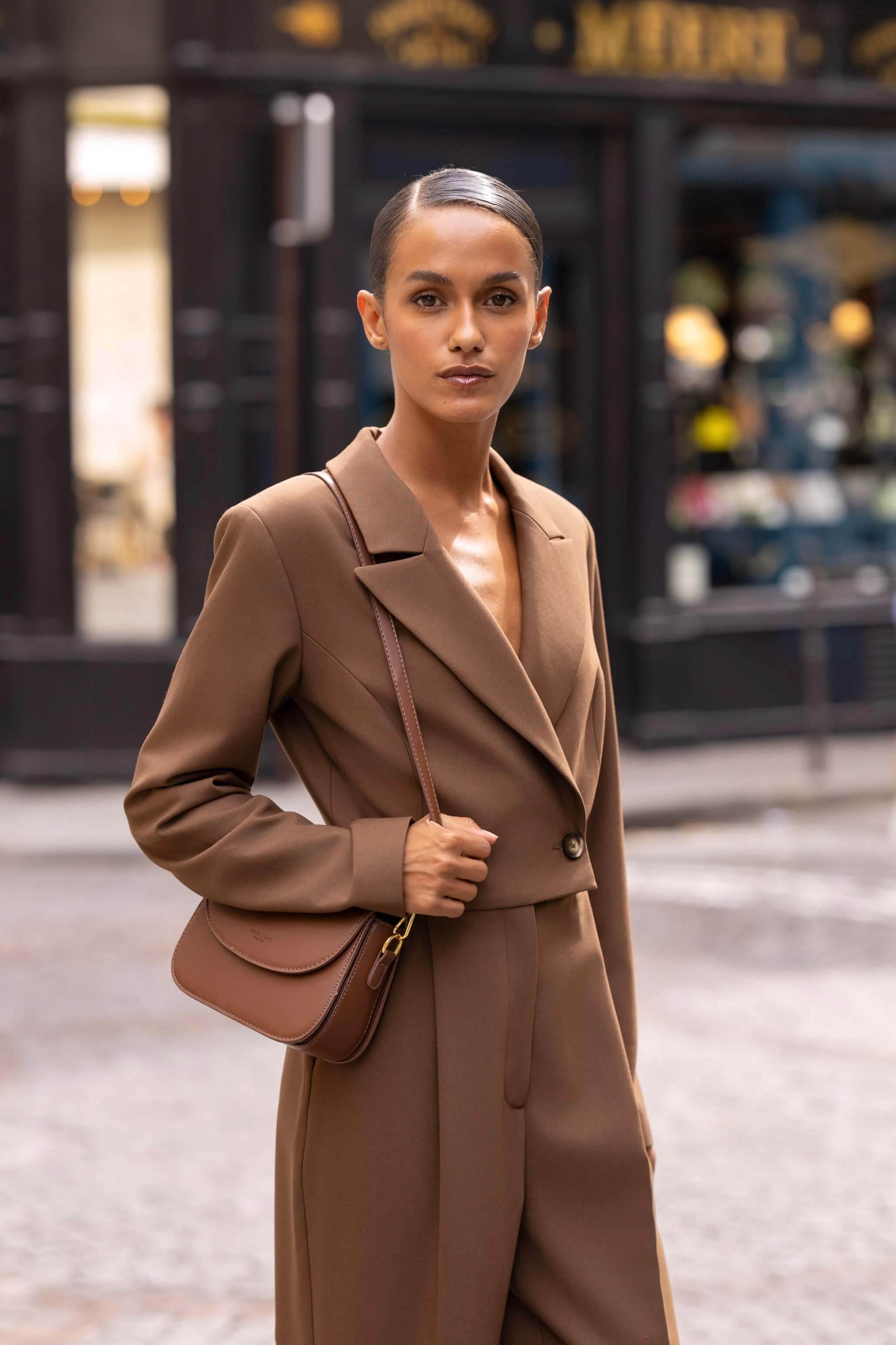 Fabriquée en laine recyclée de première qualité, cette combinaison se compose d'un corsage doublé en viscose avec une fermeture boutonnée et d'un pantalon à fermeture à glissière. Elle est dotée de poches fonctionnelles et de passants de ceinture. Sa coupe droite et son col à revers complètent la silhouette.