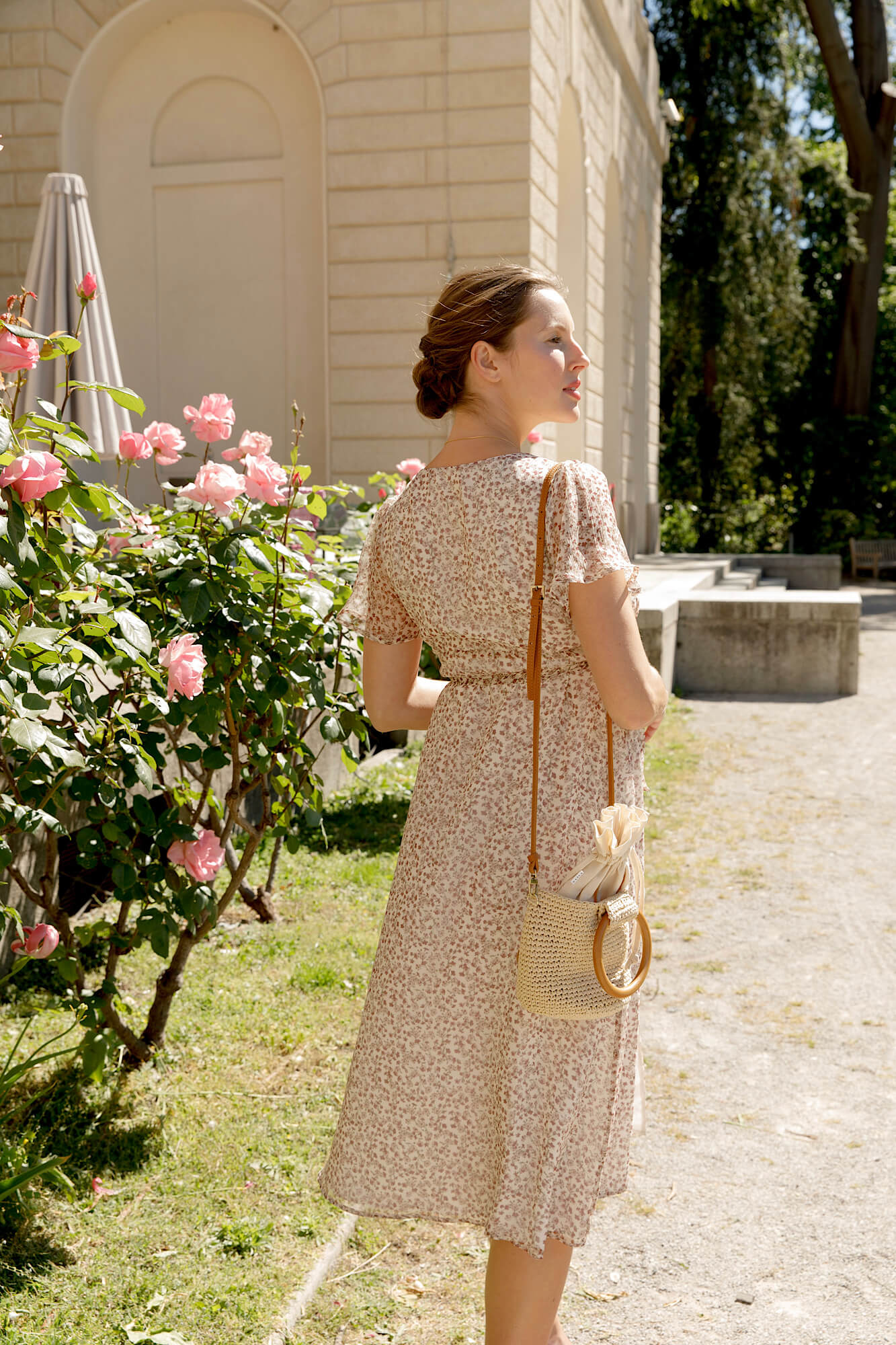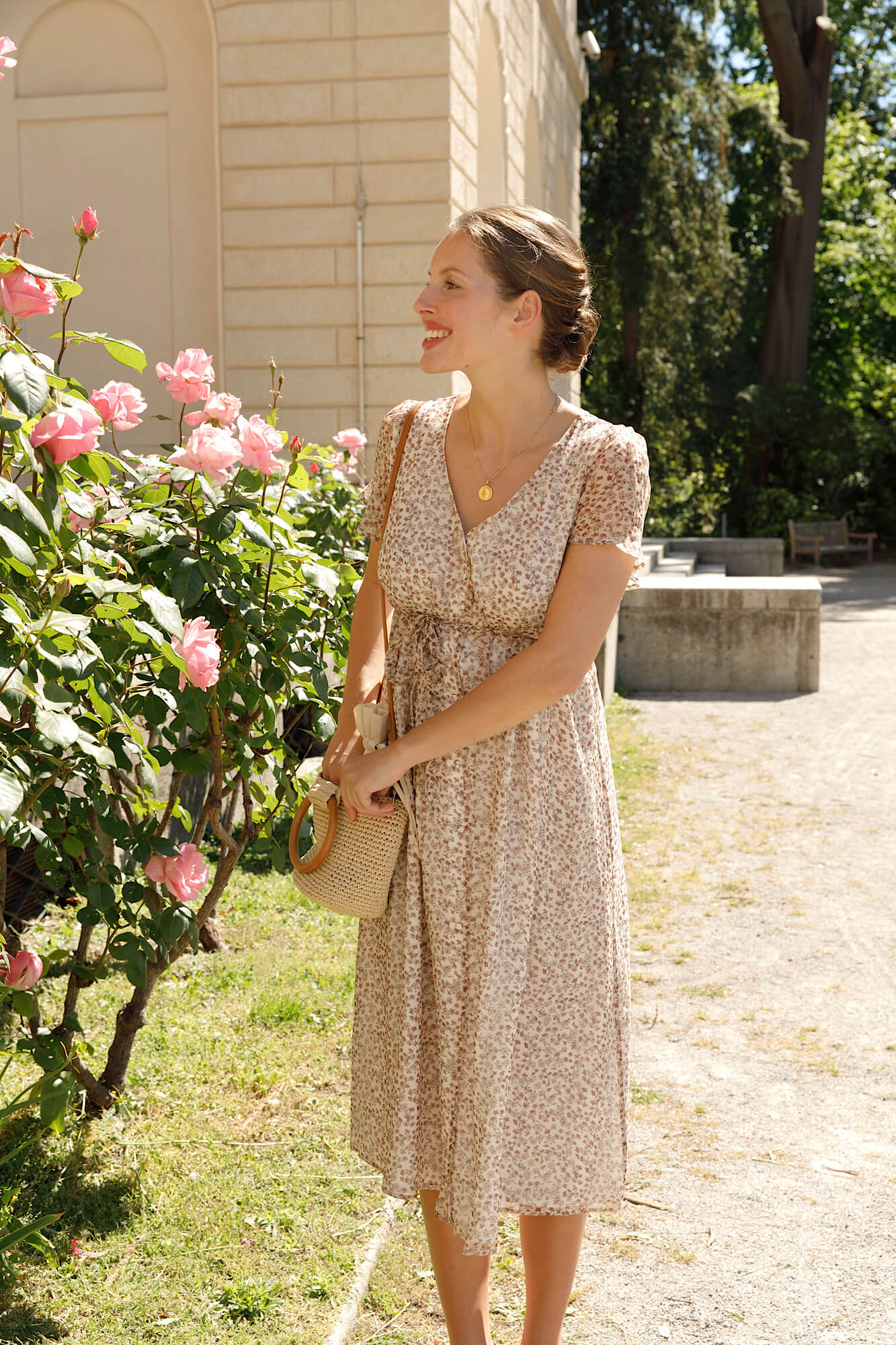 Cette sublime robe de maternité est réalisée en crêpe de Chine de soie recyclée, avec une doublure en viscose douce pour un confort optimal. Agrémentée de délicates manches pétales, elle présente d’une taille empire ajustable qui sublime votre silhouette. Sa fermeture boutonnée sur le devant permet de l’enfiler sans effort à chaque étape de la grossesse et bien au-delà.