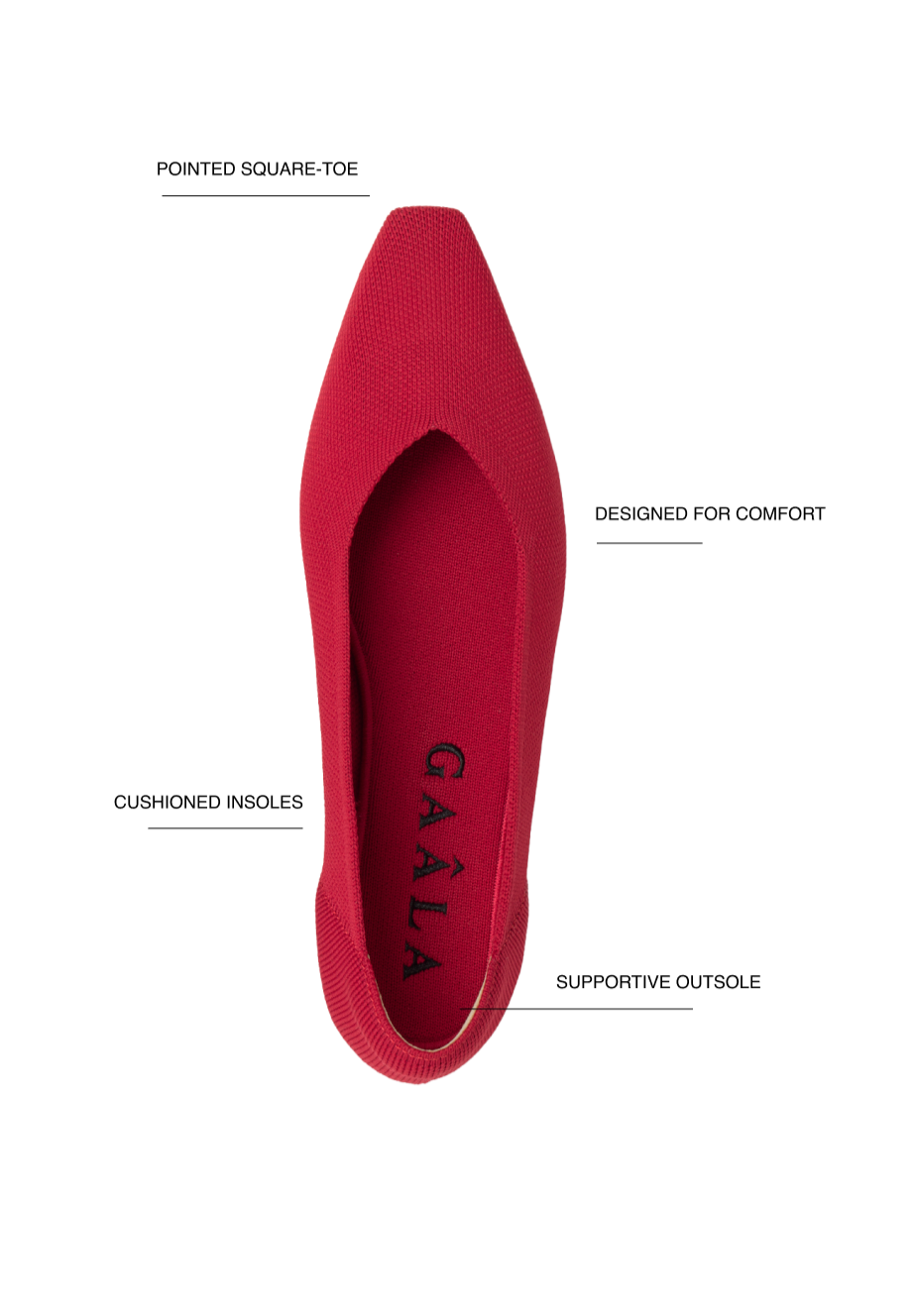 The uppers and insoles of our flats are made from 80% recycled polyester and 20% non-toxic nylon yarn, while the outsoles are crafted from carbon-free, non-toxic rubber.