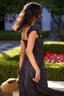 Gentle hand wash or delicate machine wash is recommended to maintain the quality of the fabric and ruffles.