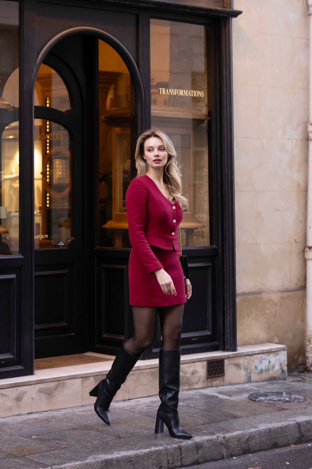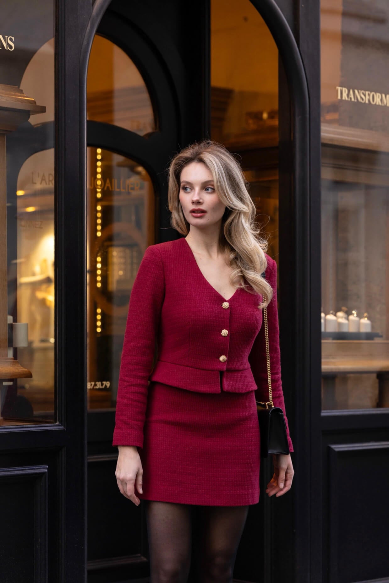 Please note that these items are sold separately. To complete the look, be sure to select both the jacket and the skirt individually.