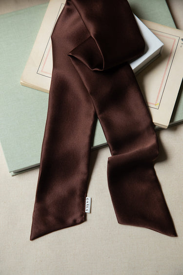 This hair scarf is crafted from luxurious surplus silk from our collections. It is designed to be gentle on your hair, preventing breakage and frizz. Tie it around the base of your ponytail or at the end of a braid, fasten it around a bun, or use it as a headband.
