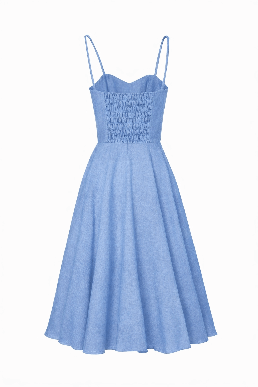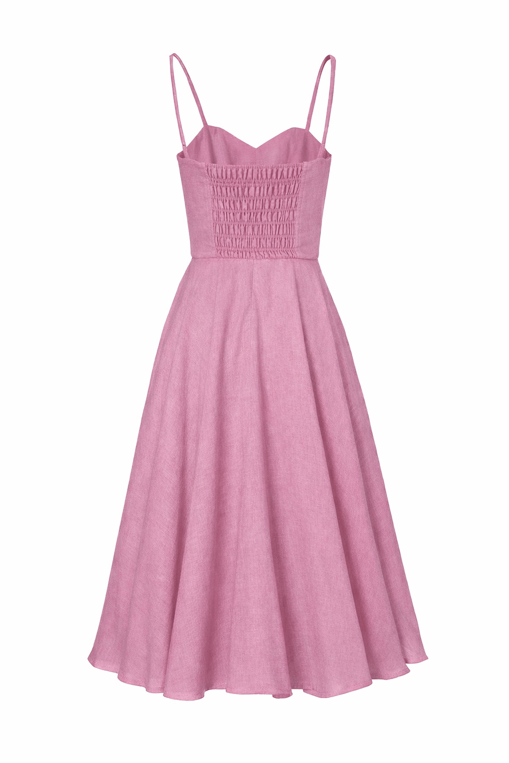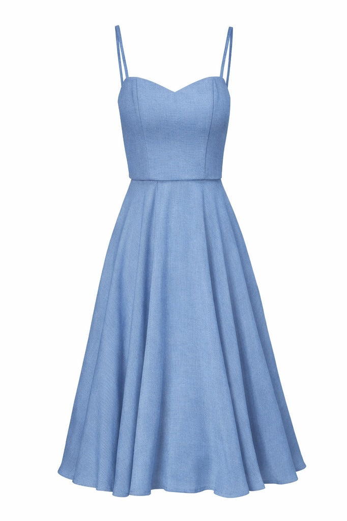 Crafted from sustainable linen, this Bardot linen dress features a sweetheart neckline framing a fitted bodice and an elastic back for the perfect fit. A detachable vintage-inspired petticoat crafted from cotton is included with the dress, allowing you to elevate the silhouette with dramatic volume for special occasions or go without for everyday wear.