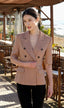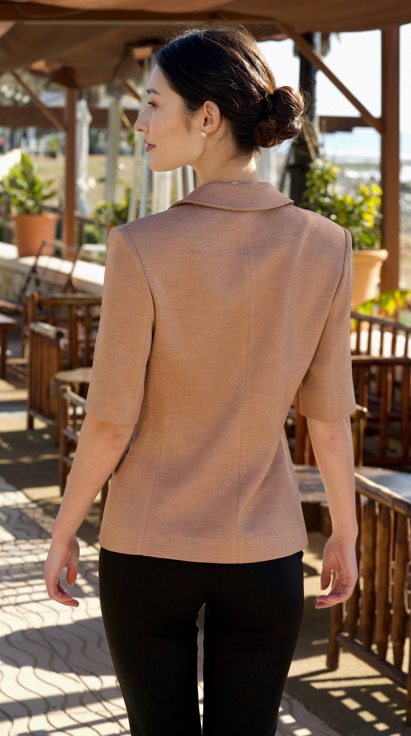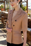 This jacket is created from luxurious Italian cotton tweed. The structured silhouette features a V-neck framed by a classic collar, a double-breasted design, quarter-length sleeves, and front pockets. The silhouette tapers at the waist and finishes with a hip-length cut.